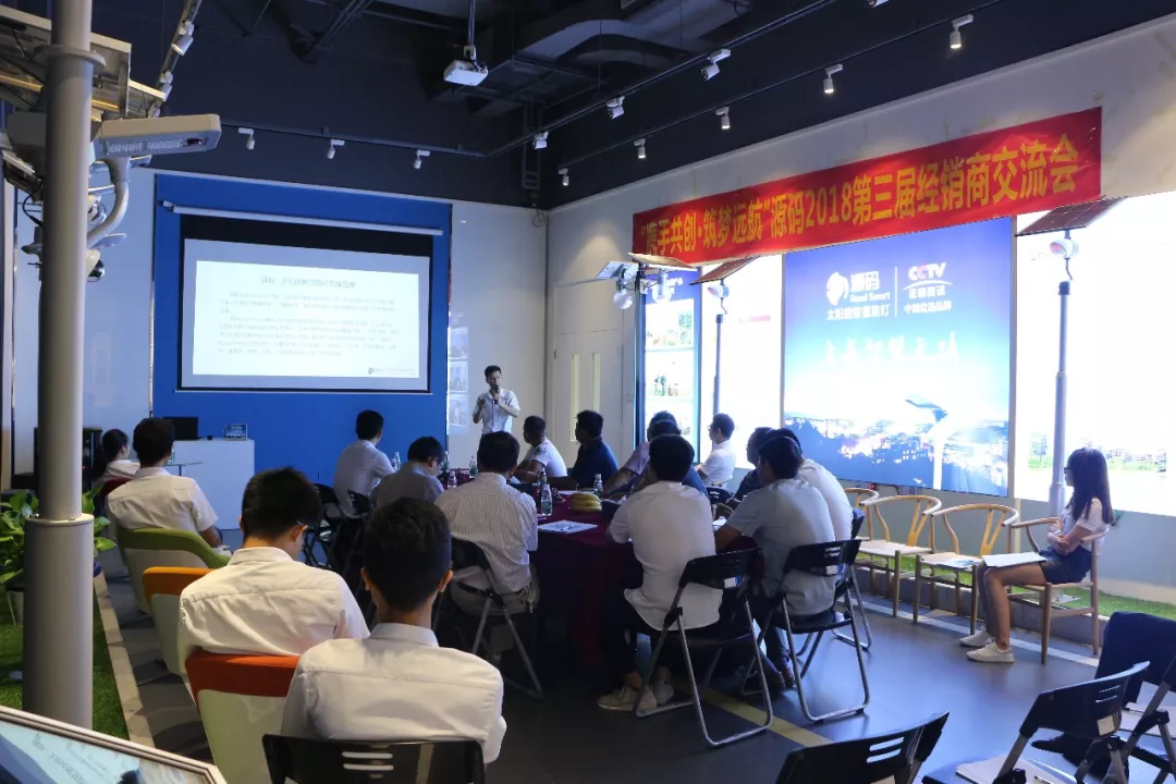 7月14号,会议正式拉开帷幕?;嵋樯?,项总对源码做了介绍及总结,产品上,源码搭载自主研发设计的智能监测与控制系统,并荣获80余项专利,并首创了太阳能路灯的标准-Rs标准;品牌上,源码线上线下推广相融合,线下,全国80+终端展厅,全面提升价值体验感,并与CCTV,世界照明报等达成合作;战略上,源码坚持全球化战略,产品遍及世界120多个国家和地区??突辏忧苛硕栽绰氲娜峡筛?。
