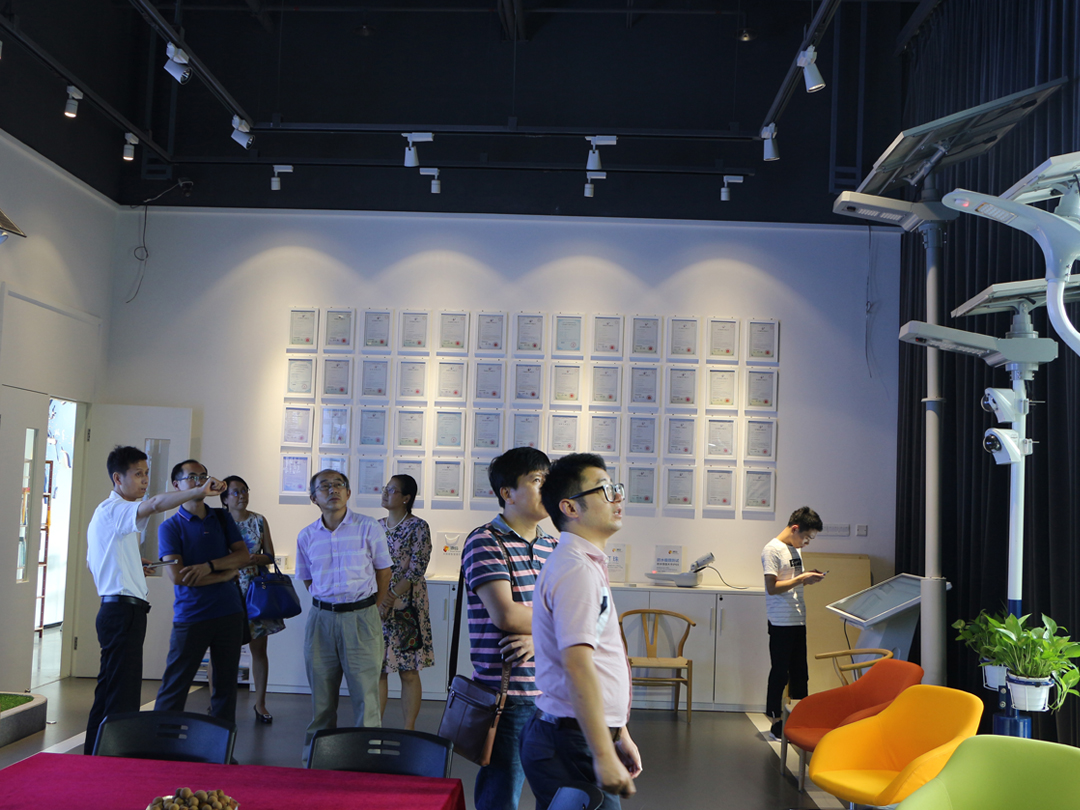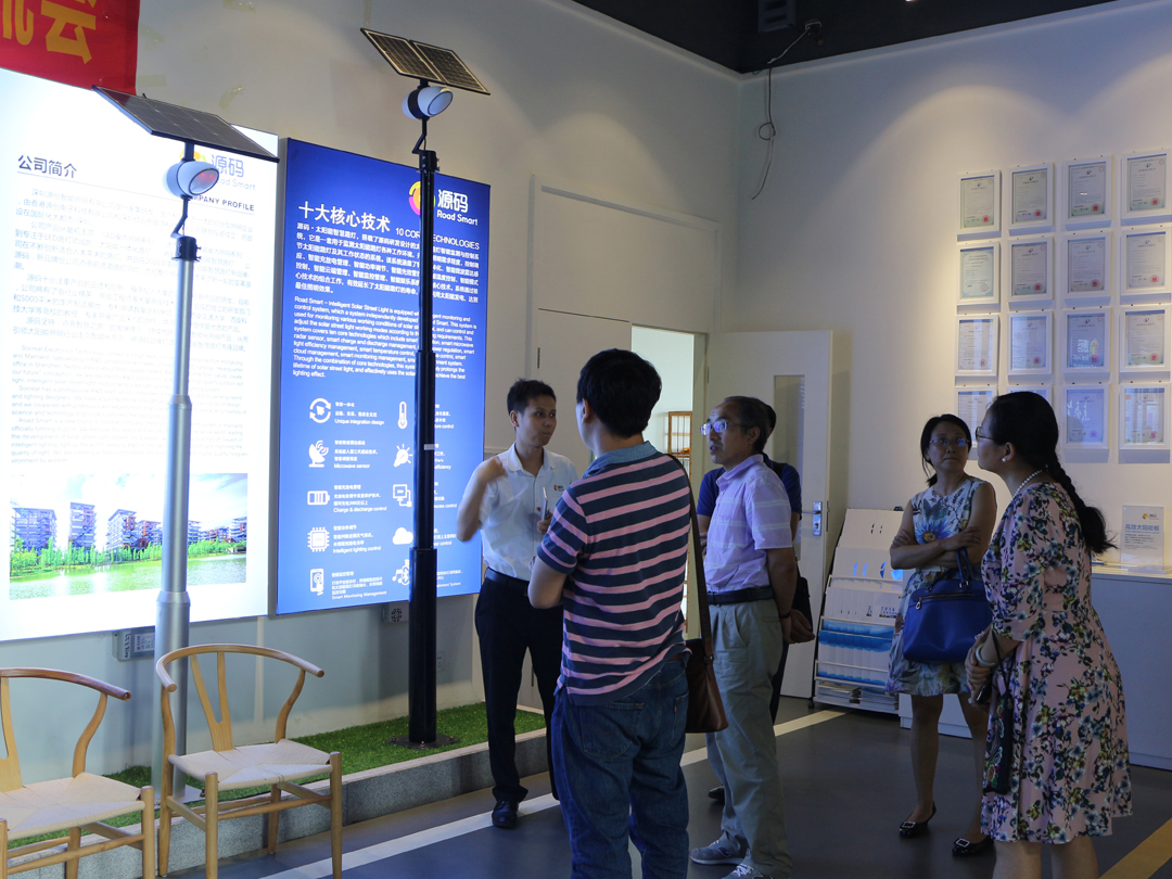 签约后,郭院长带队参观源码展厅,在展厅内,源码技术人员演示了源码太阳能路灯的物联网远程控制技术,利用网络实现远程监控和控制灯具,通过采集的数据分析,实时调节灯光的明暗和色温。通过手机APP蓝牙连接灯具,读取灯具状态和参数设置情况,调整灯具的亮度,工作模式等,对源码太阳能路灯进行远程控制,此外,技术人员现场演示春茧灯的娱乐管理功能,当优美的音乐旋律从春茧灯中传来,郭院长一阵称赞。